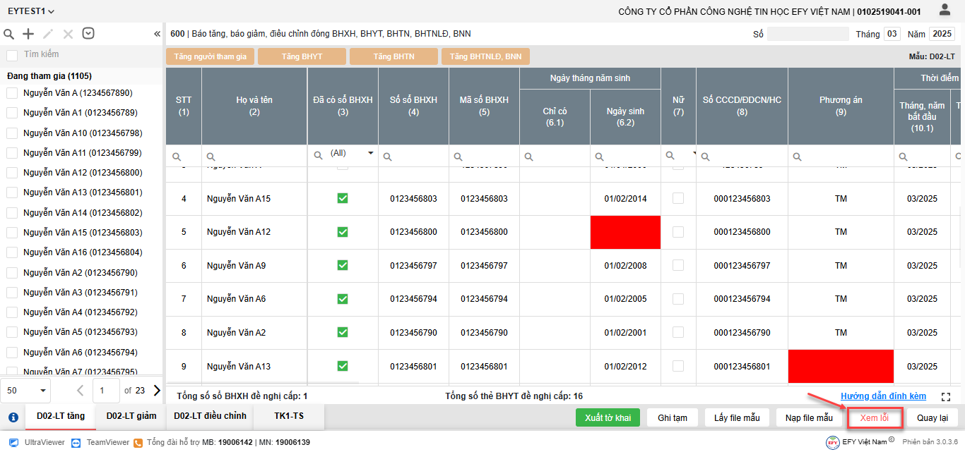 - Kiểm tra, bổ sung thông tin tại các ô báo đỏ