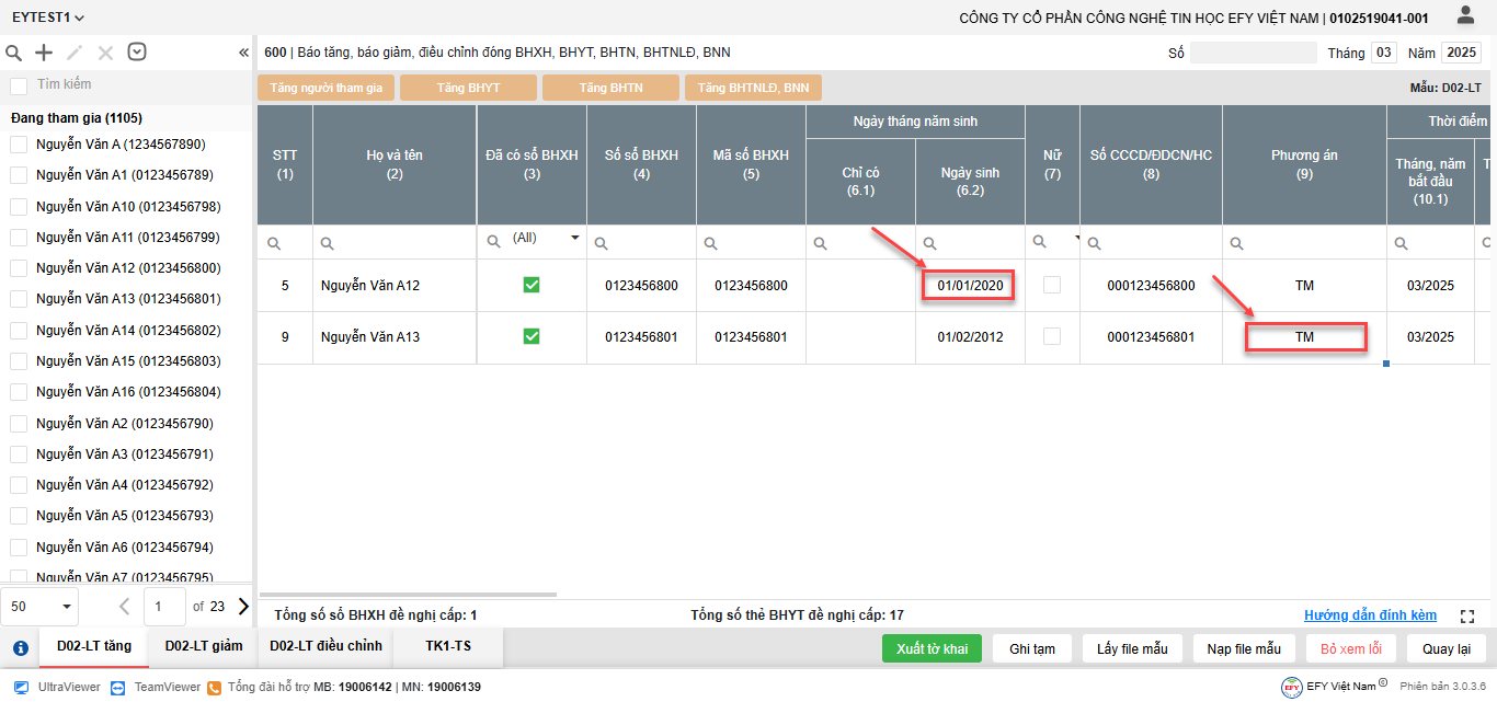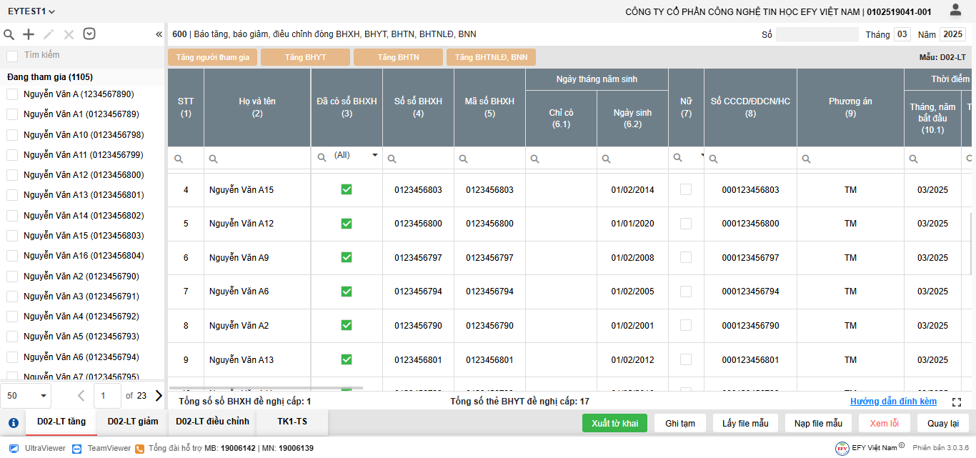 - Danh sách lao động đang kê khai