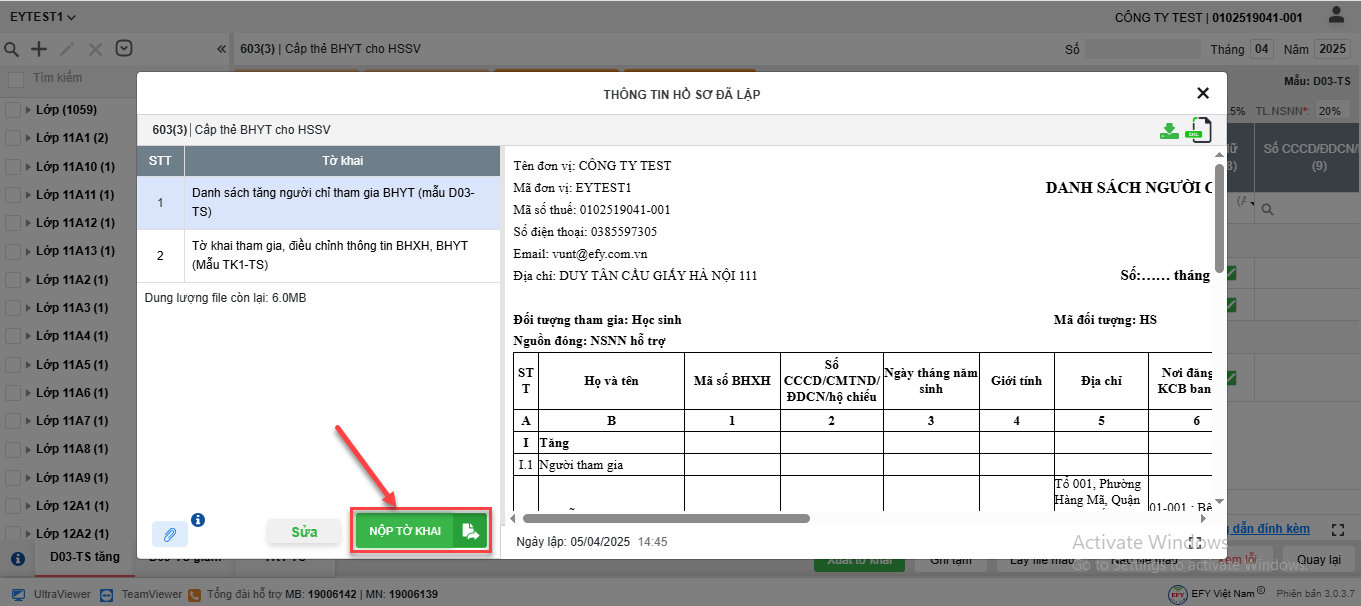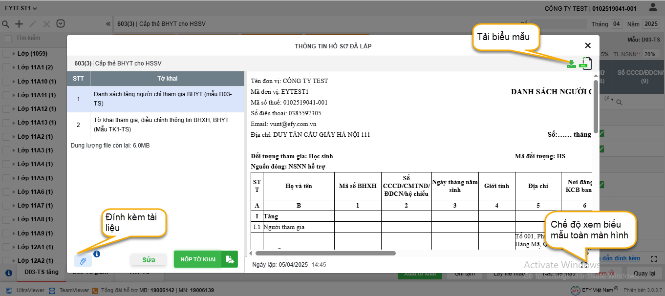 - Phầm mềm tự động đưa lao động vào các biểu mẫu tương ứng. Anh/chị xem lại thông tin hoặc tải biểu mẫu về lưu trữ