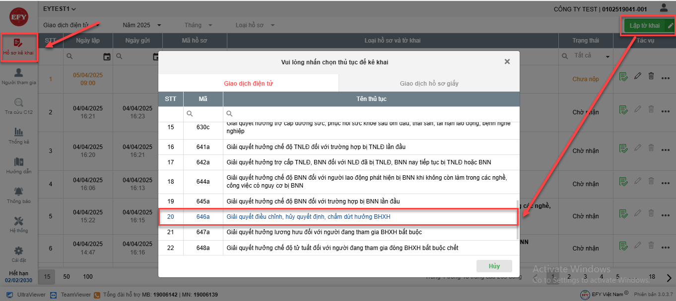 - Trong tab Giao dịch điện tử => chọn thủ tục 646a