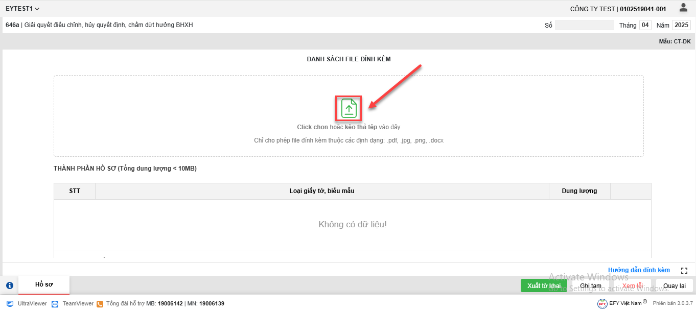 Bước 2: Tải hồ sơ đề nghị và các giấy tờ chứng minh