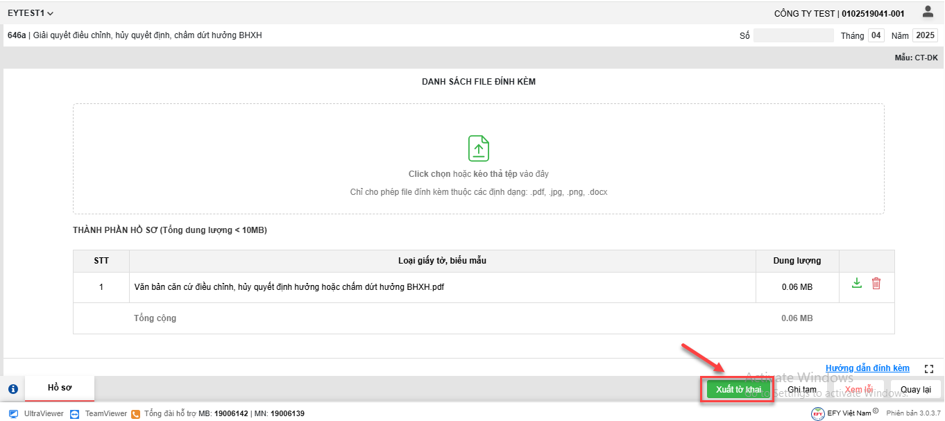 - Sau khi thêm lao động và bổ sung đầy đủ thông tin tại các biểu mẫu, nhấn Xuất tờ khai