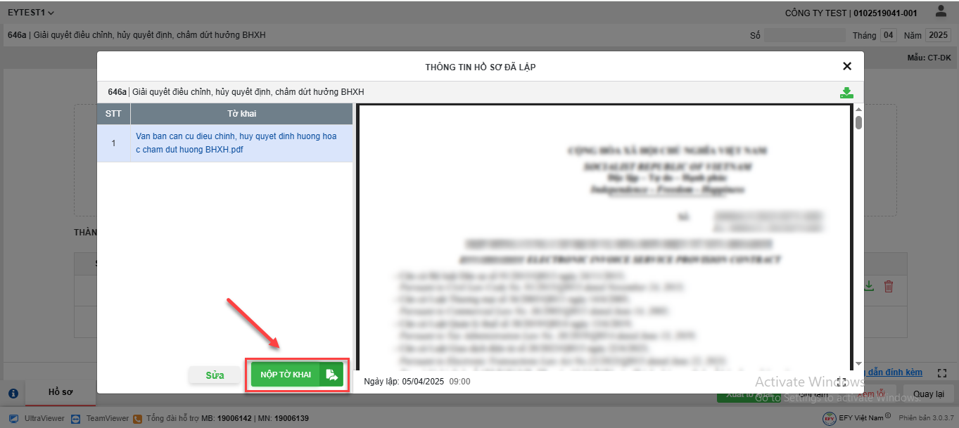 Nhấn Nộp tờ khai