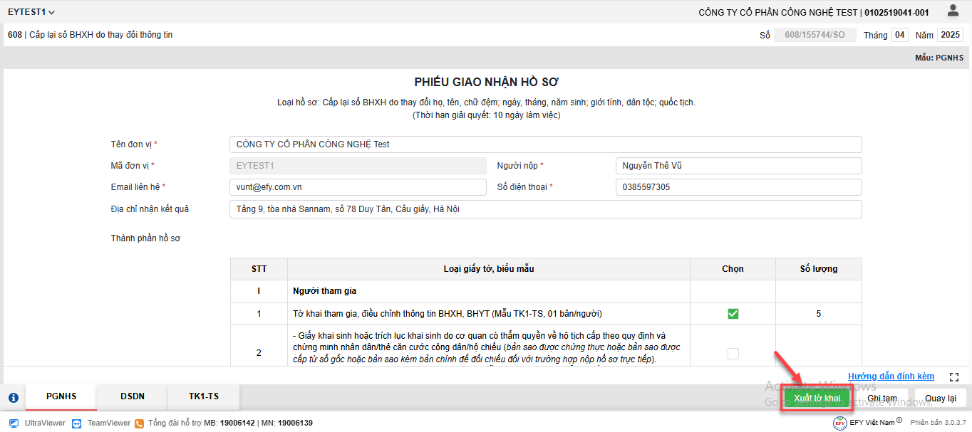 - Sau khi thêm lao động và bổ sung đầy đủ thông tin tại các biểu mẫu, nhấn Xuất tờ khai
