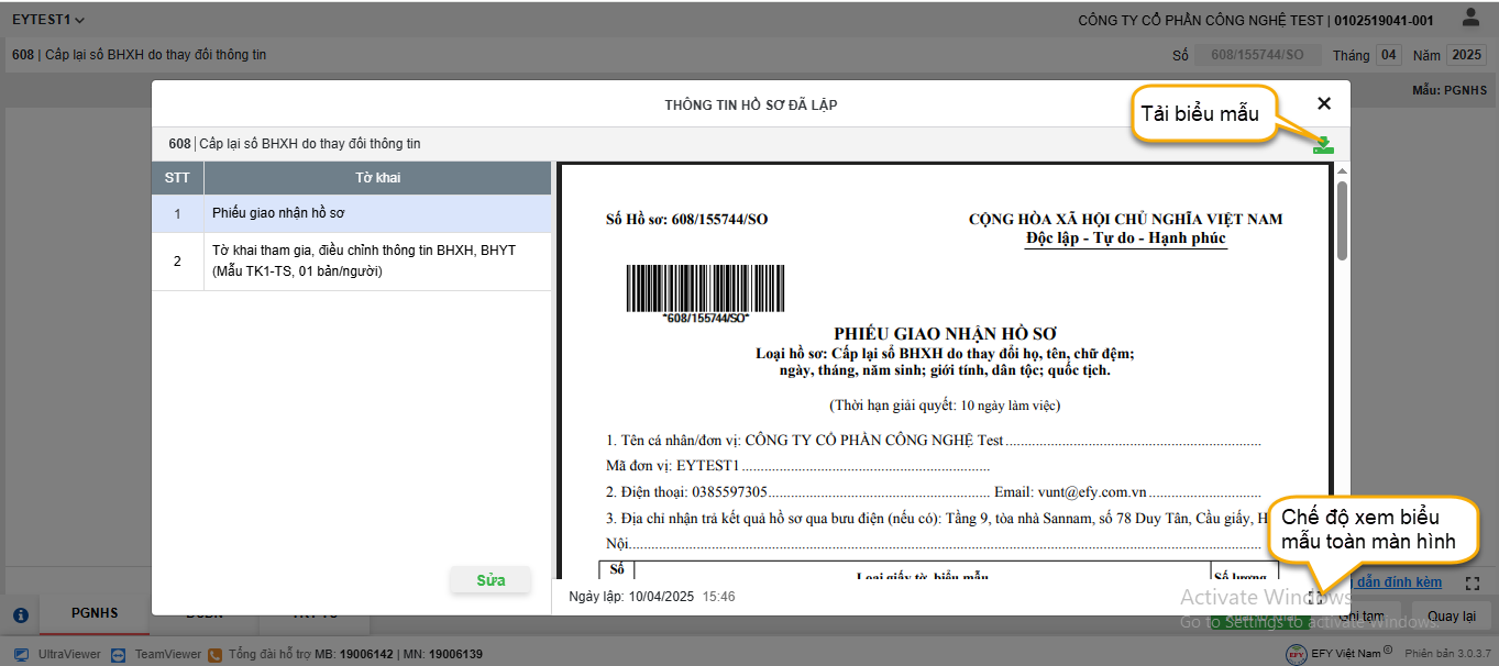 - Phầm mềm tự động đưa lao động vào các biểu mẫu tương ứng. Anh/chị xem lại thông tin và chọn từng biểu mẫu tải về để gửi hồ sơ lên BHXH