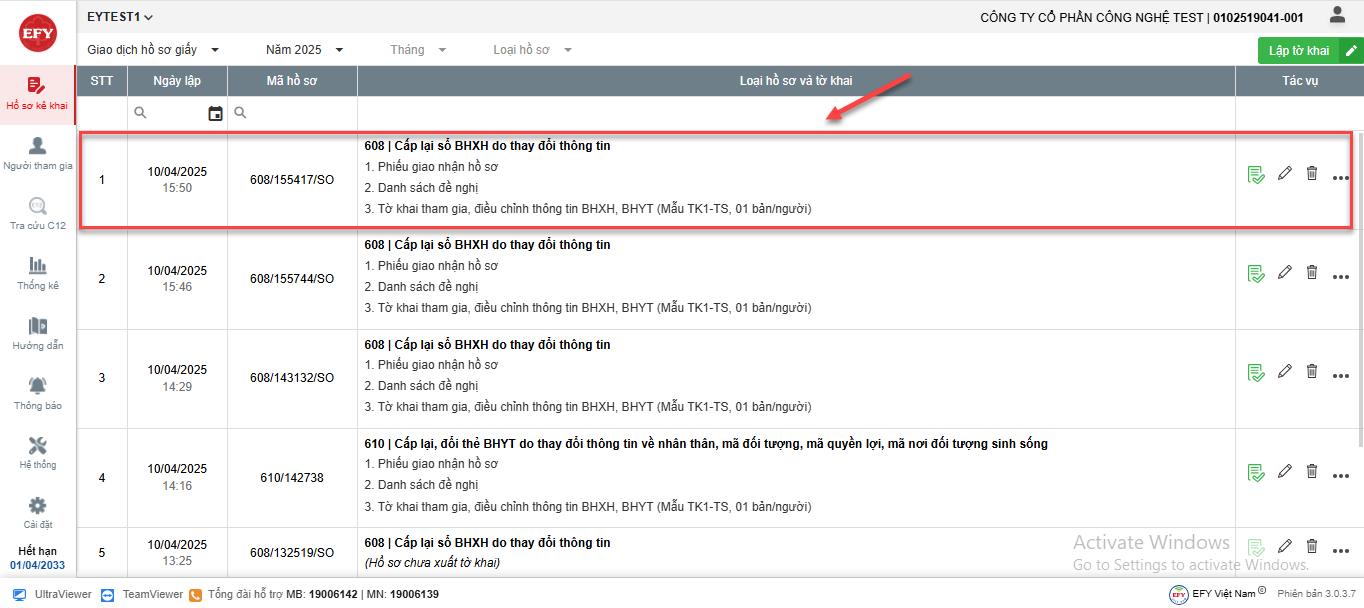 Bước 4: Xem hồ sơ đã khai báo