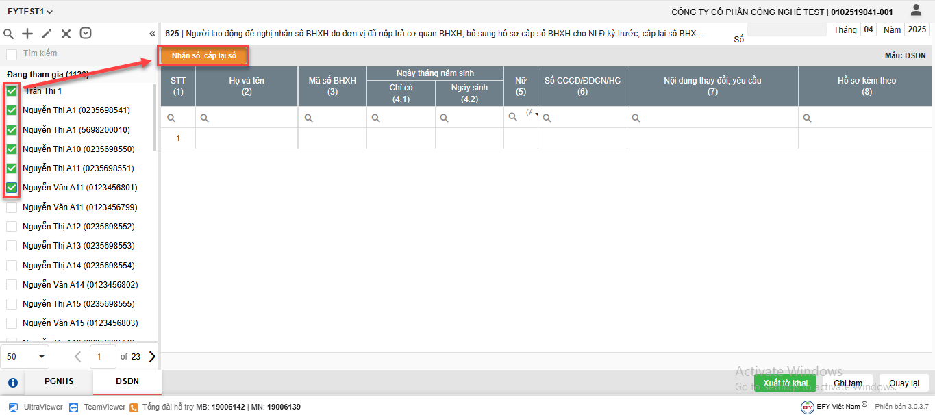 Lưu ý: Cột số lượng hiển thị theo số người lao động được khai báo bên tab DSDN