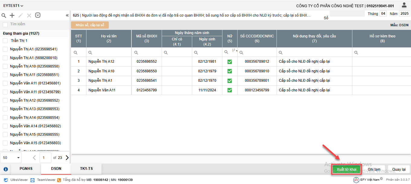 - Sau khi thêm lao động và bổ sung đầy đủ thông tin tại các biểu mẫu, nhấn Xuất tờ khai